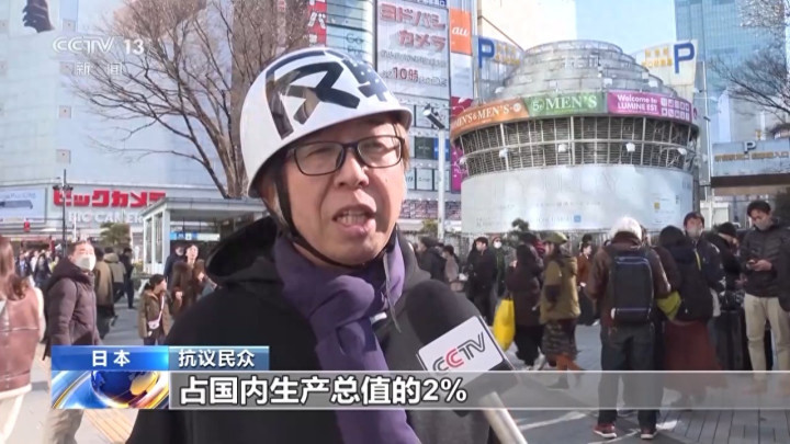 抗议民众:高市政权一上台,就立刻要把防卫费提高到占国内生产总值的2%,而现在甚至还打算进一步提高到3.5%乃至5%,真正想要发动战争的明显是日本,对此我们坚决反对。